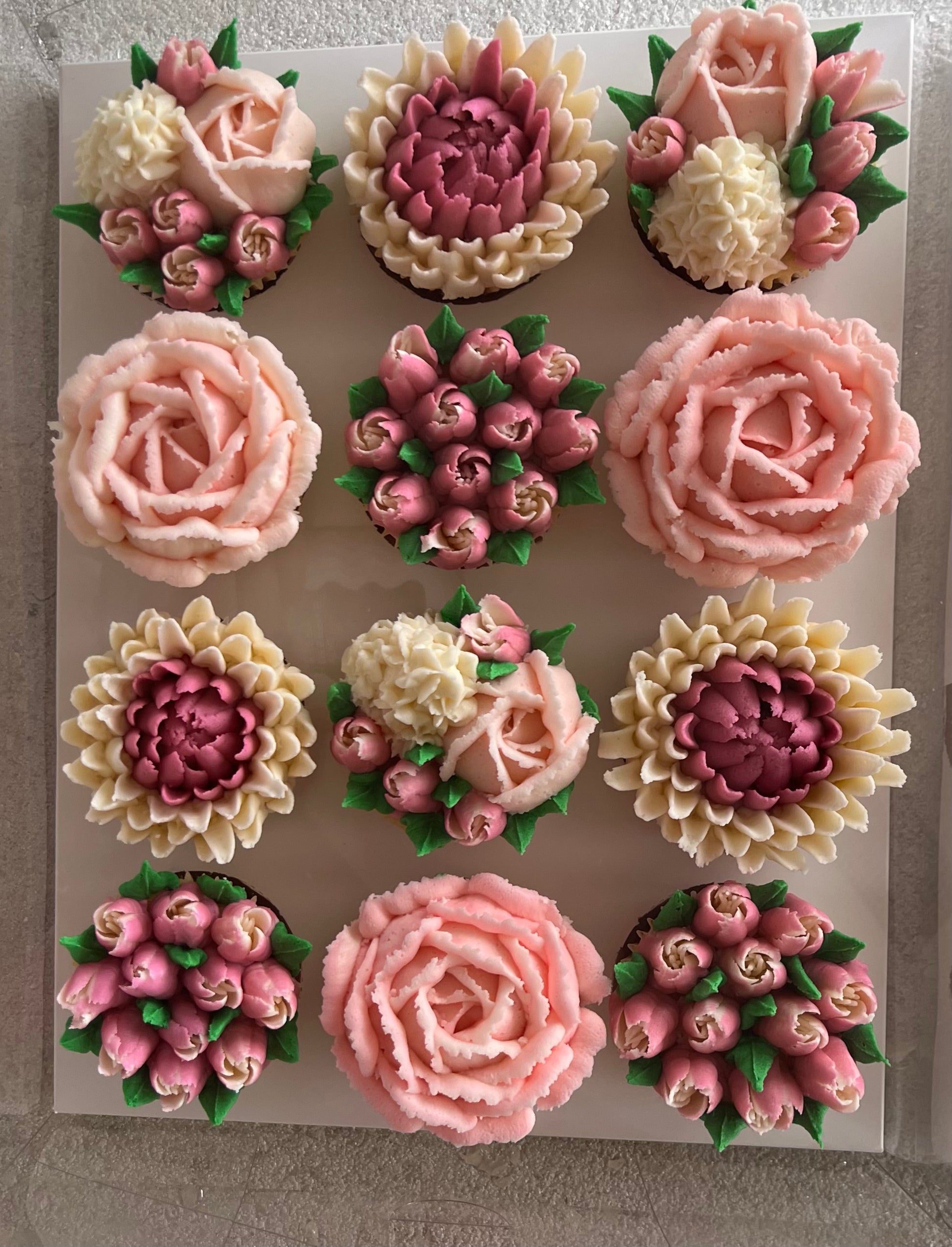 QUEENIE - Box of 12 Floral Cupcakes - Edible Florals - Classic Standard 12 - Edible Arrangements - Fresh and Delicate Cupcake Creations - Dessert