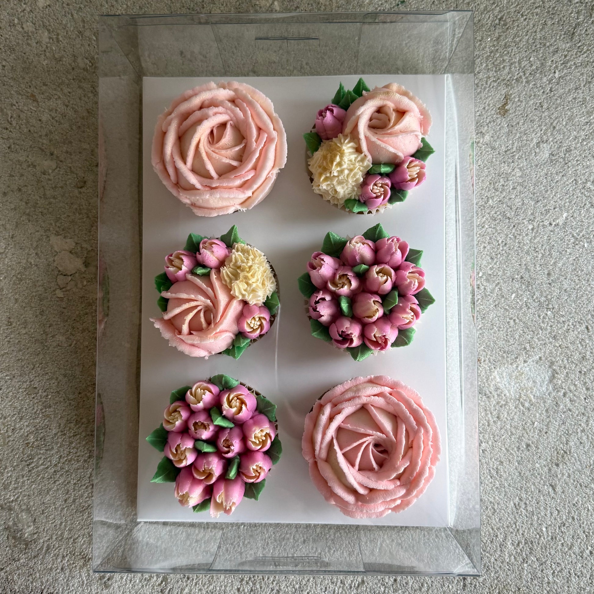 Our classic standard 6 box of cupcakes comes with 6 beautiful edible florals in a clear showcase box wrapped with a gorgeous ribbon and gift tag. It makes for the perfect gift!