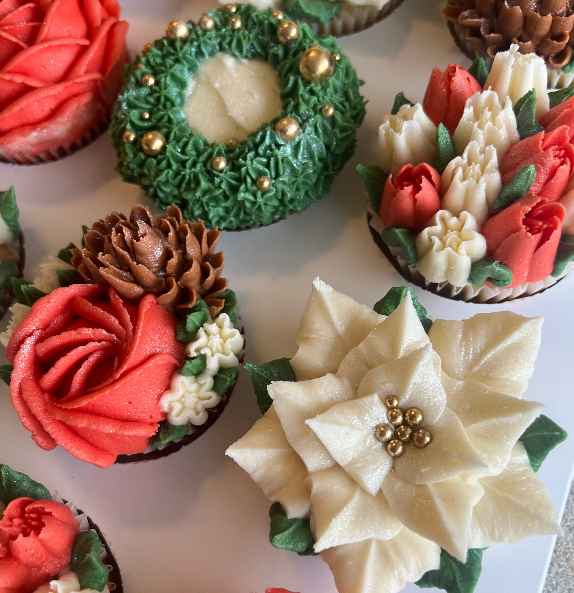 Our classic standard 12 box of cupcakes comes with 12 beautiful edible florals in a clear showcase box wrapped with a gorgeous ribbon and gift tag. It makes for the perfect gift!